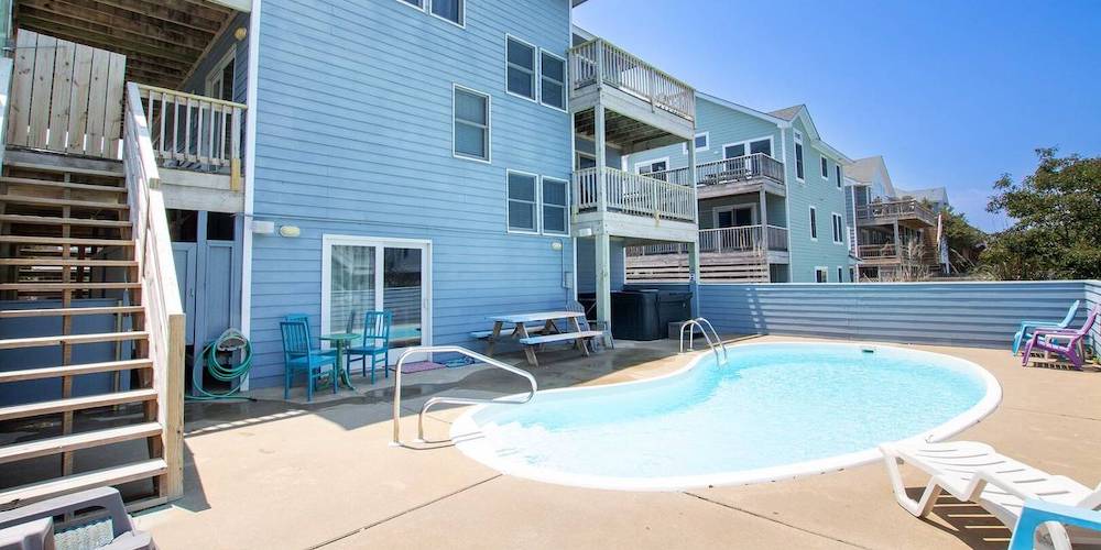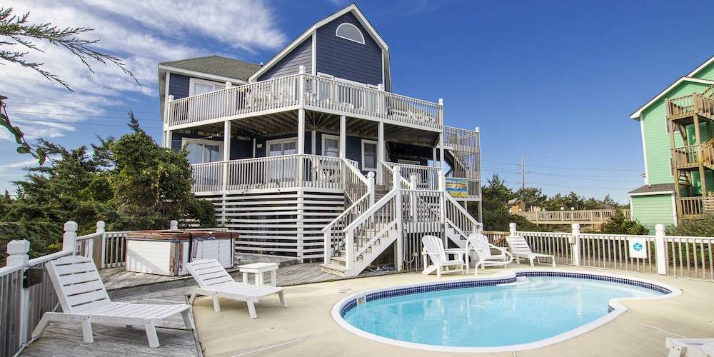 Located in Avon, you can celebrate the New Year with a much-needed Latitude Adjustment that features a heated private pool. Look over the ocean from the two large wrap-around decks or relax in the hot tub & private heated pool and ring in 2024 in pure style. There are 5 bedrooms and 3 bathrooms so bring the whole family and your furry friends to celebrate with those you love most!